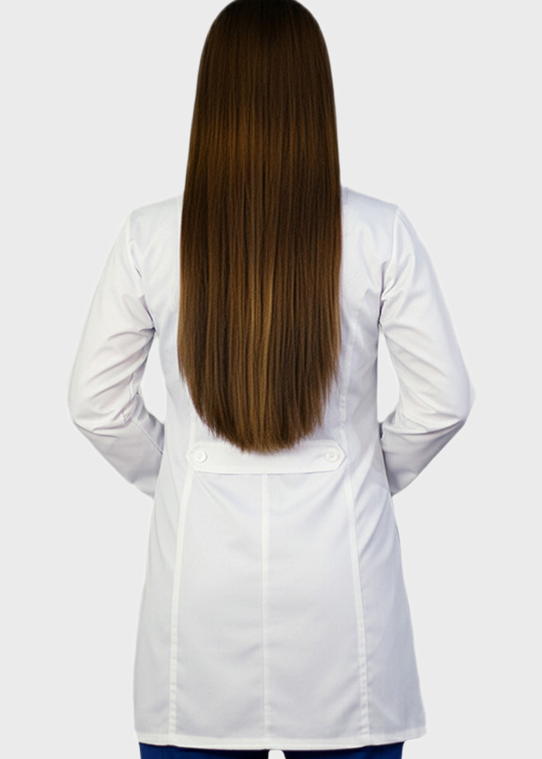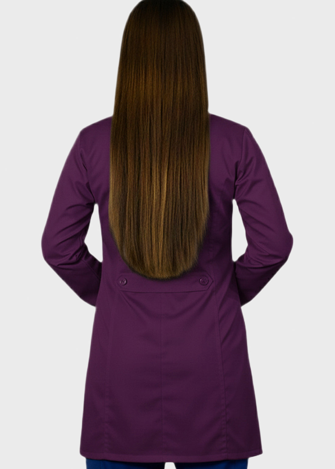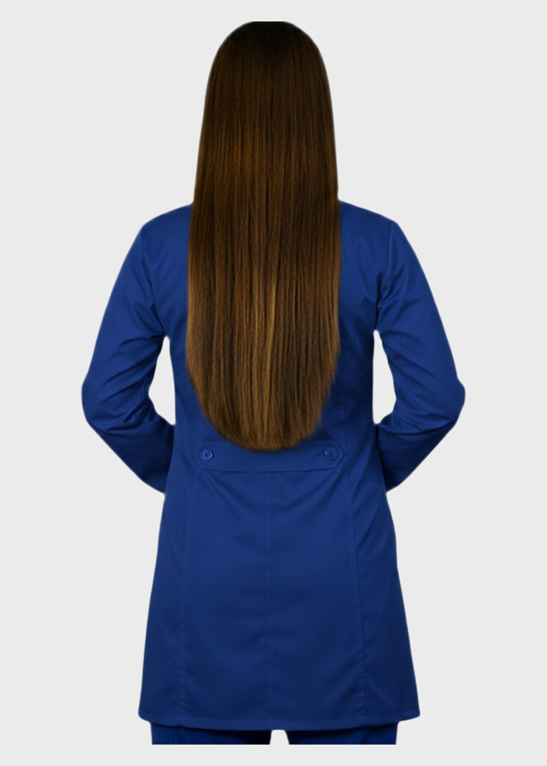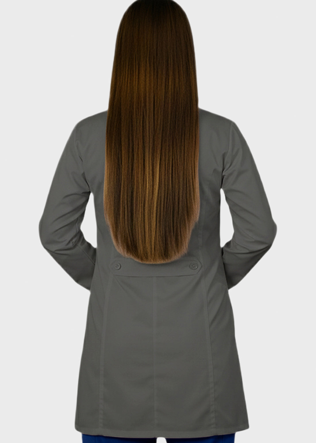 HeedFit 35 Inches Women's Two Pocket Fashion Lab Coat combines professional authority with a tailored, feminine fit. Featuring princess seams, notched lapel, five-button closure, back belt, and mock cuffs, it offers style, comfort, and mobility. Two spacious patch pockets provide secure storage, ensuring all-day performance and polished professionalism.