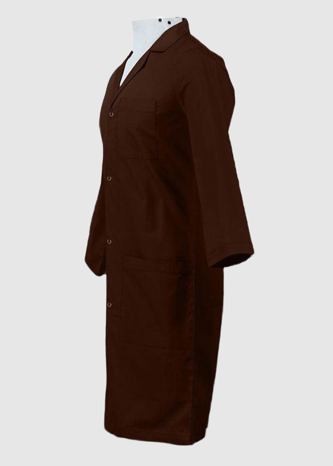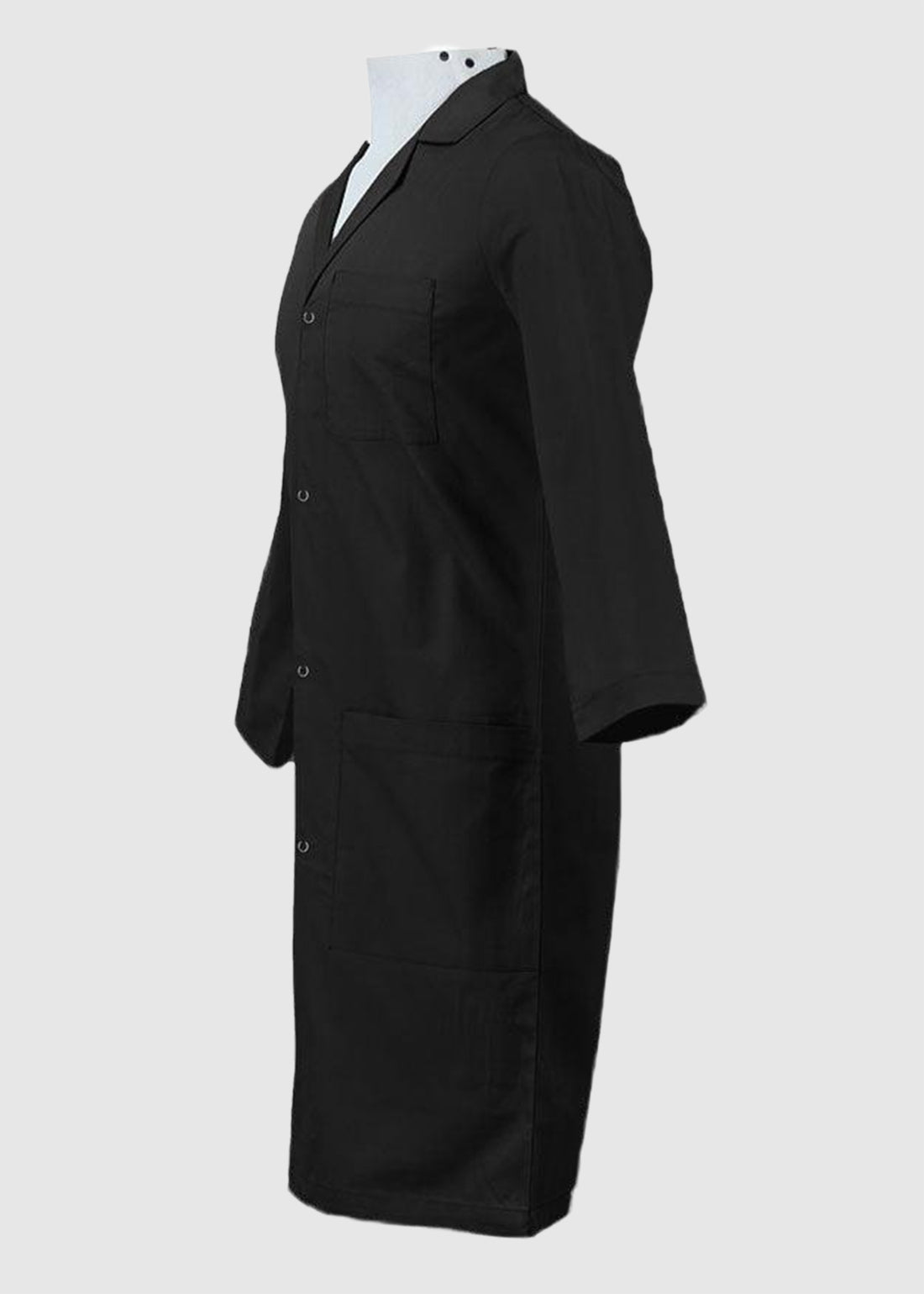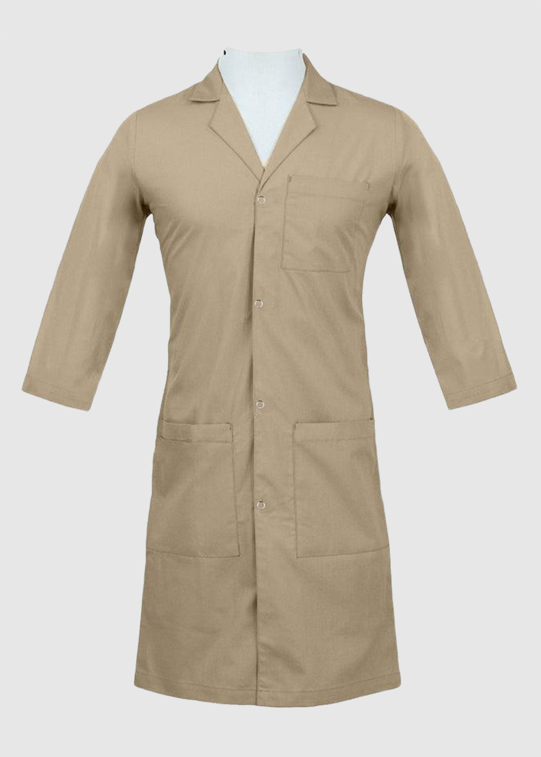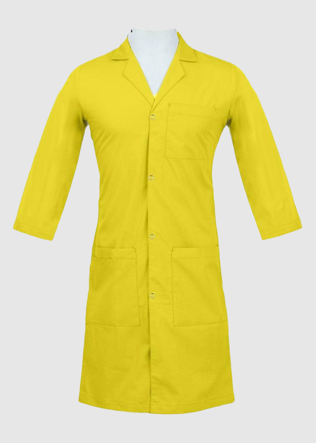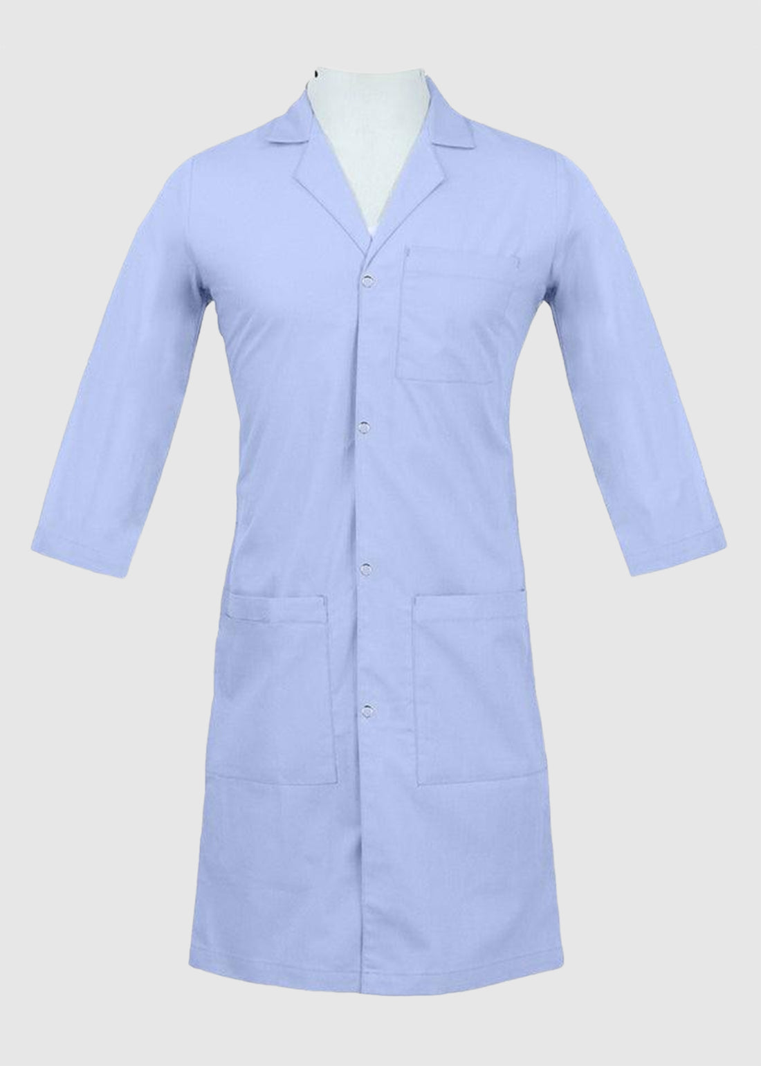 - The lab coat has three-quarter, set-in sleeves ensuring safety