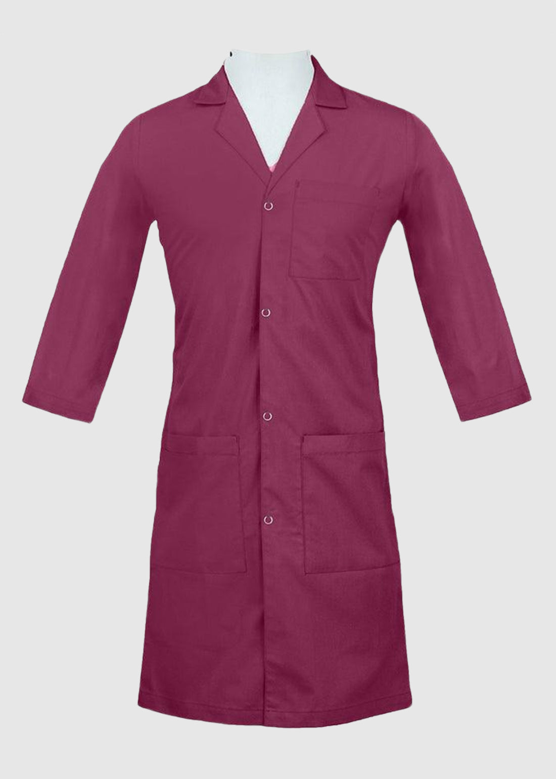 Modern and practical, this lab coat features a snap-front closure with a classic notched lapel for a clean, professional look. The three-quarter set-in sleeves provide comfortable coverage while supporting ease and safety at work.