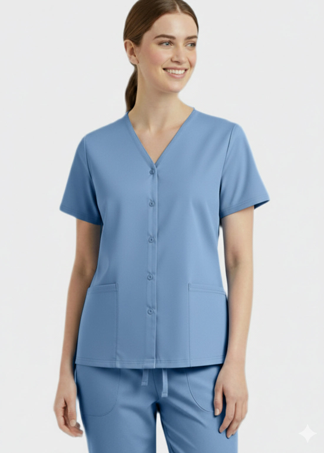 Panda Uniform Unisex Two Pocket Button Front Solid Nursing Scrub Top