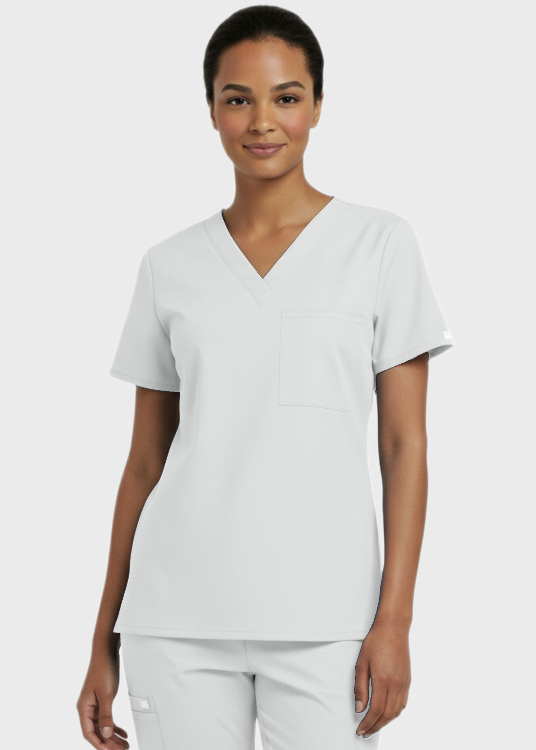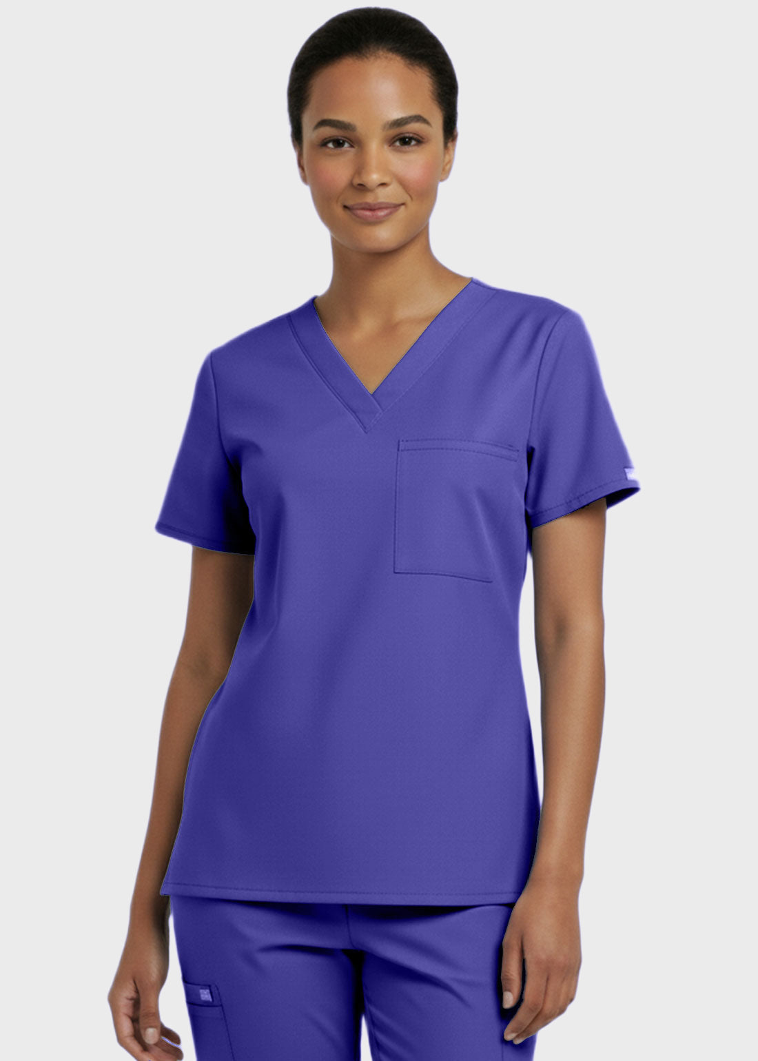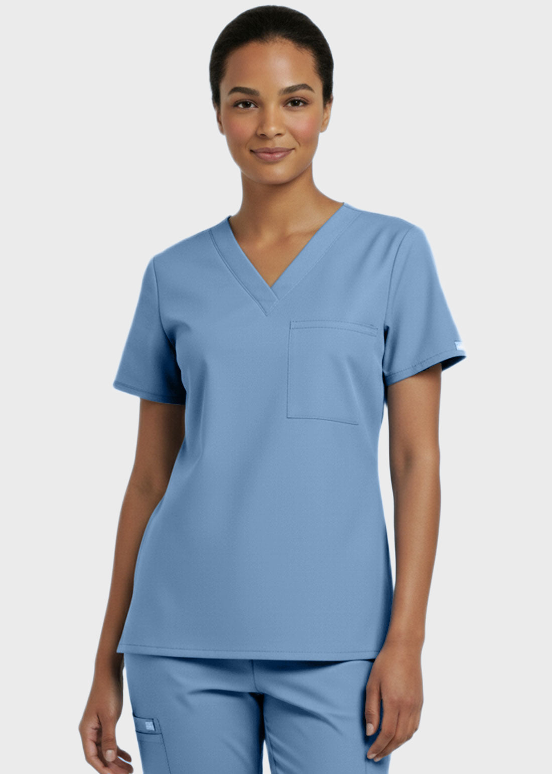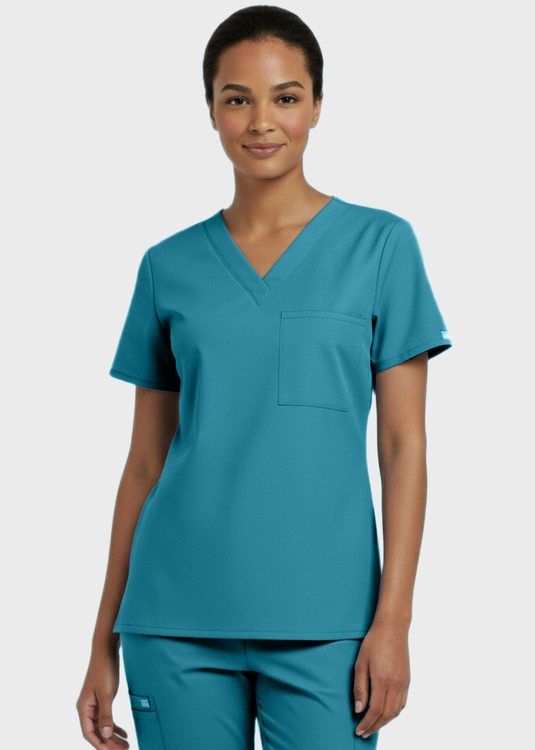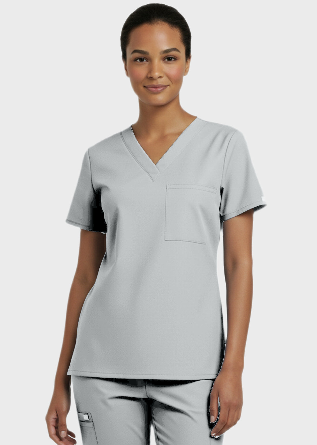Designed for comfort and everyday performance, this V-neck tunic nursing scrub top features a modern, professional look suitable for healthcare environments. It is styled with relaxed dolman sleeves for ease of movement and includes a convenient single chest pocket for essential items. With a center back length of 27.5 inches, it provides excellent coverage and a flattering fit. Ideal for long shifts, this scrub top combines functionality with a polished appearan