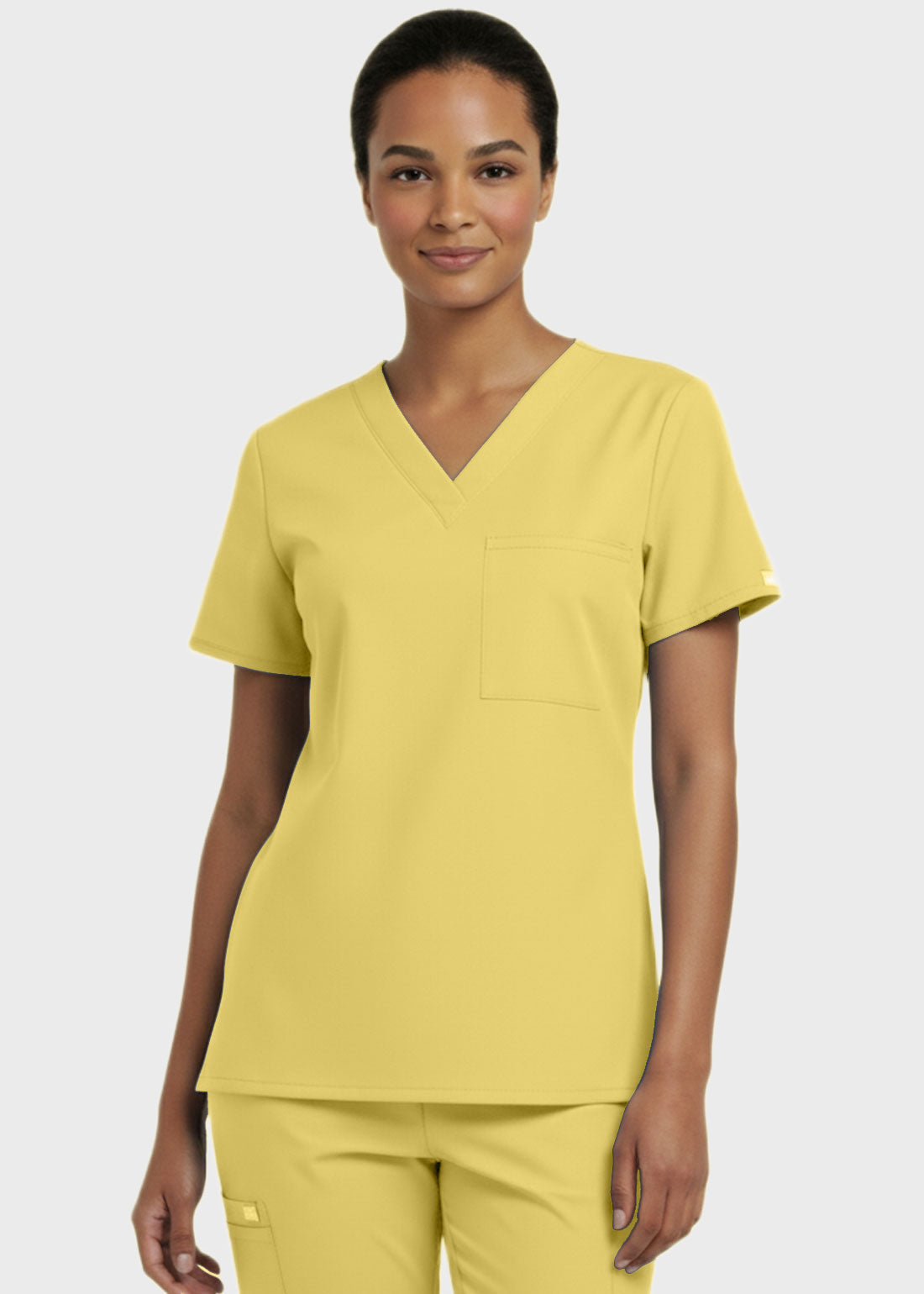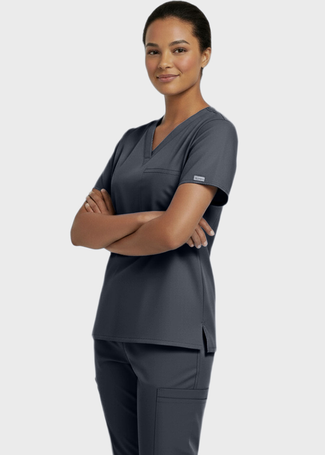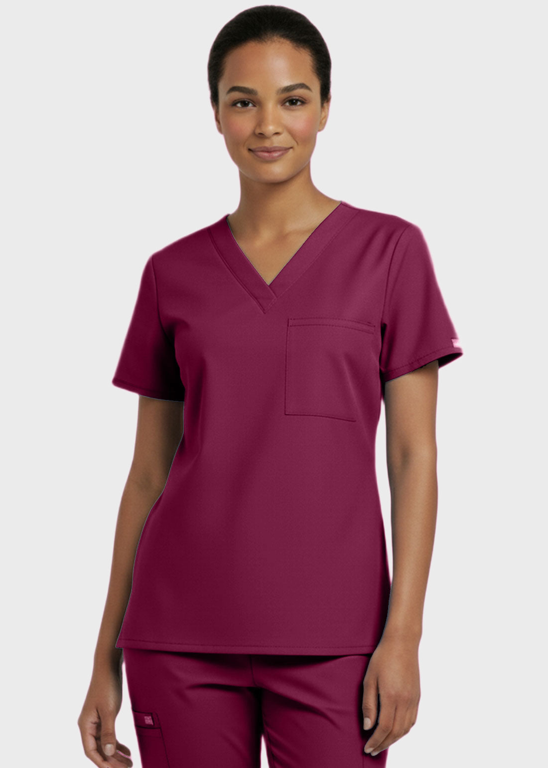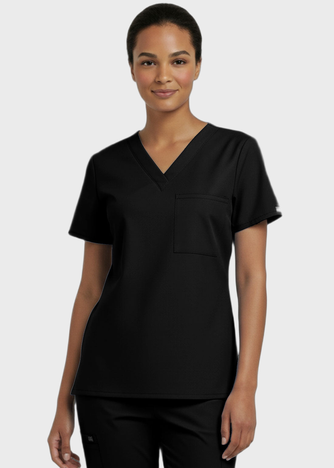 Designed for comfort and everyday performance, this V-neck tunic nursing scrub top features a modern, professional look suitable for healthcare environments. It is styled with relaxed dolman sleeves for ease of movement and includes a convenient single chest pocket for essential items. With a center back length of 27.5 inches, it provides excellent coverage and a flattering fit. Ideal for long shifts, this scrub top combines functionality with a polished appearan