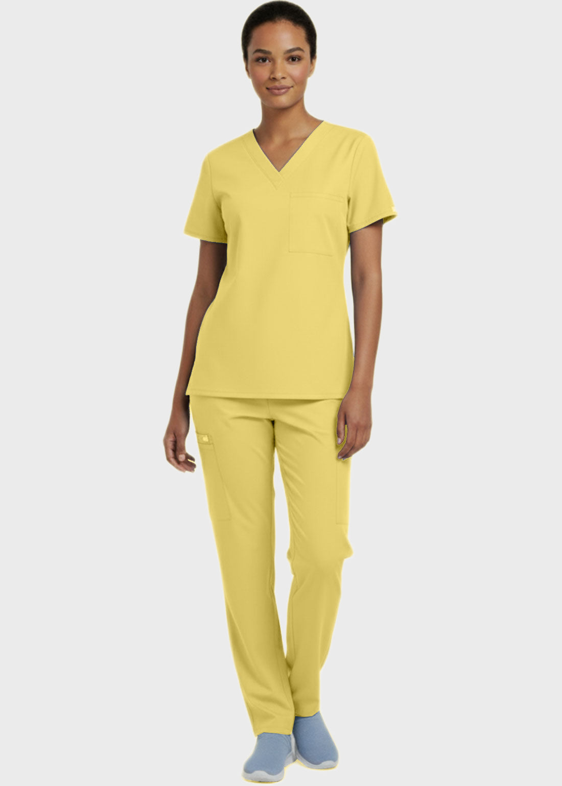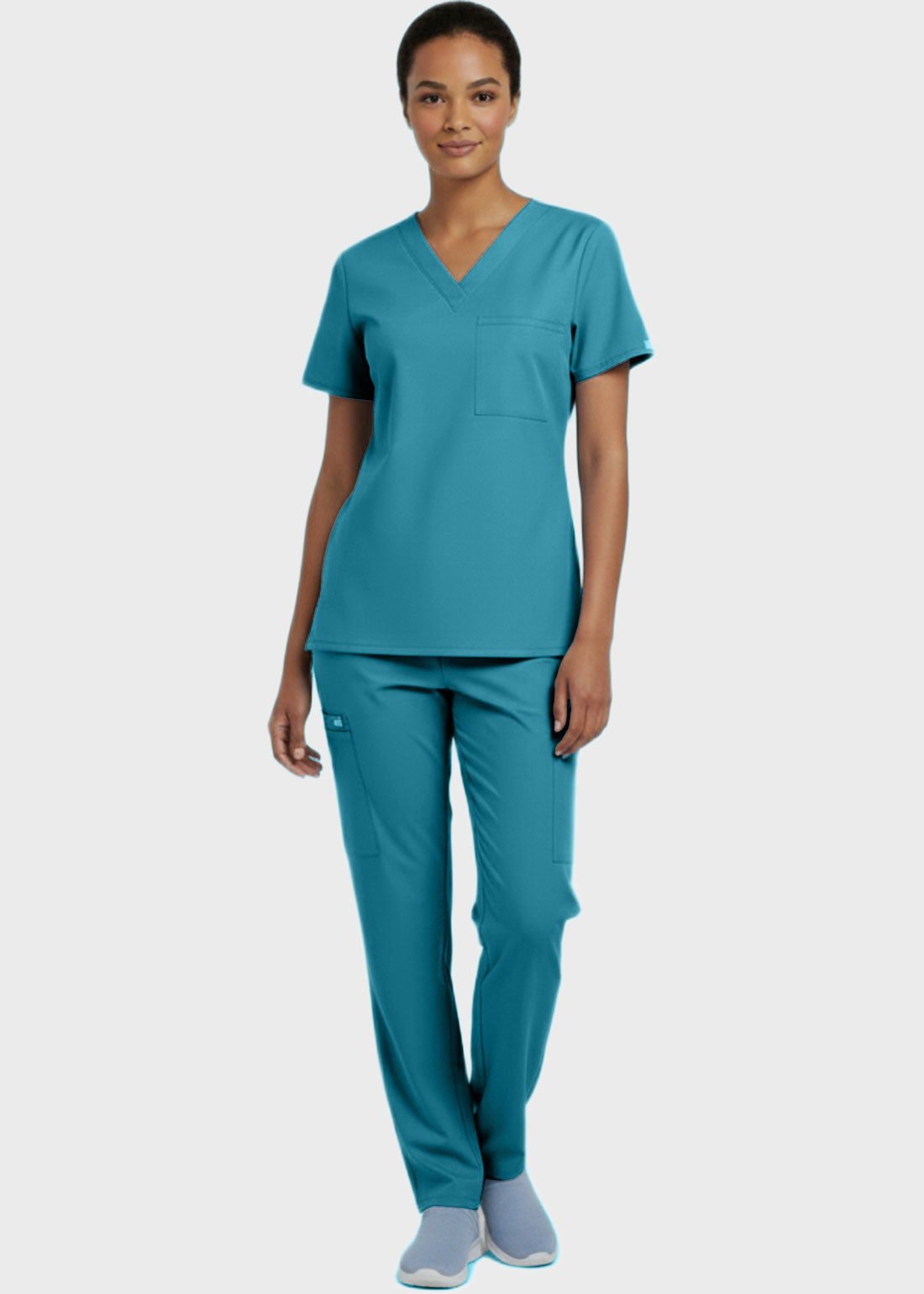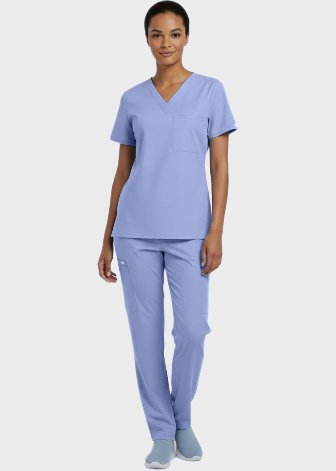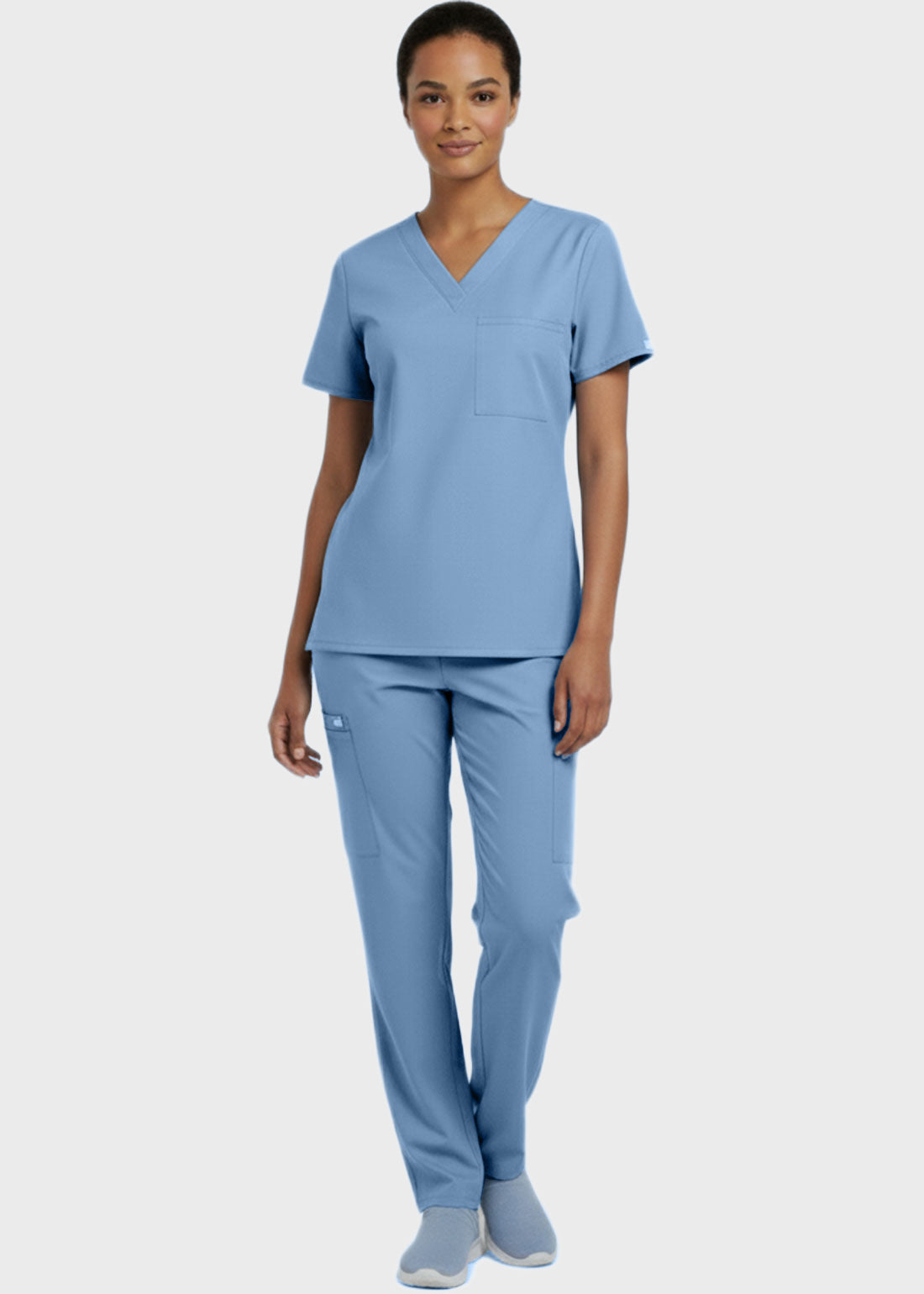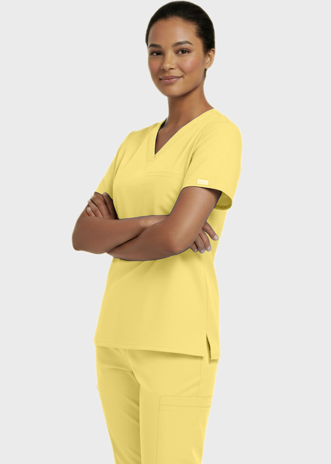 Designed for comfort and everyday performance, this V-neck tunic nursing scrub top features a modern, professional look suitable for healthcare environments. It is styled with relaxed dolman sleeves for ease of movement and includes a convenient single chest pocket for essential items. With a center back length of 27.5 inches, it provides excellent coverage and a flattering fit. Ideal for long shifts, this scrub top combines functionality with a polished appearan